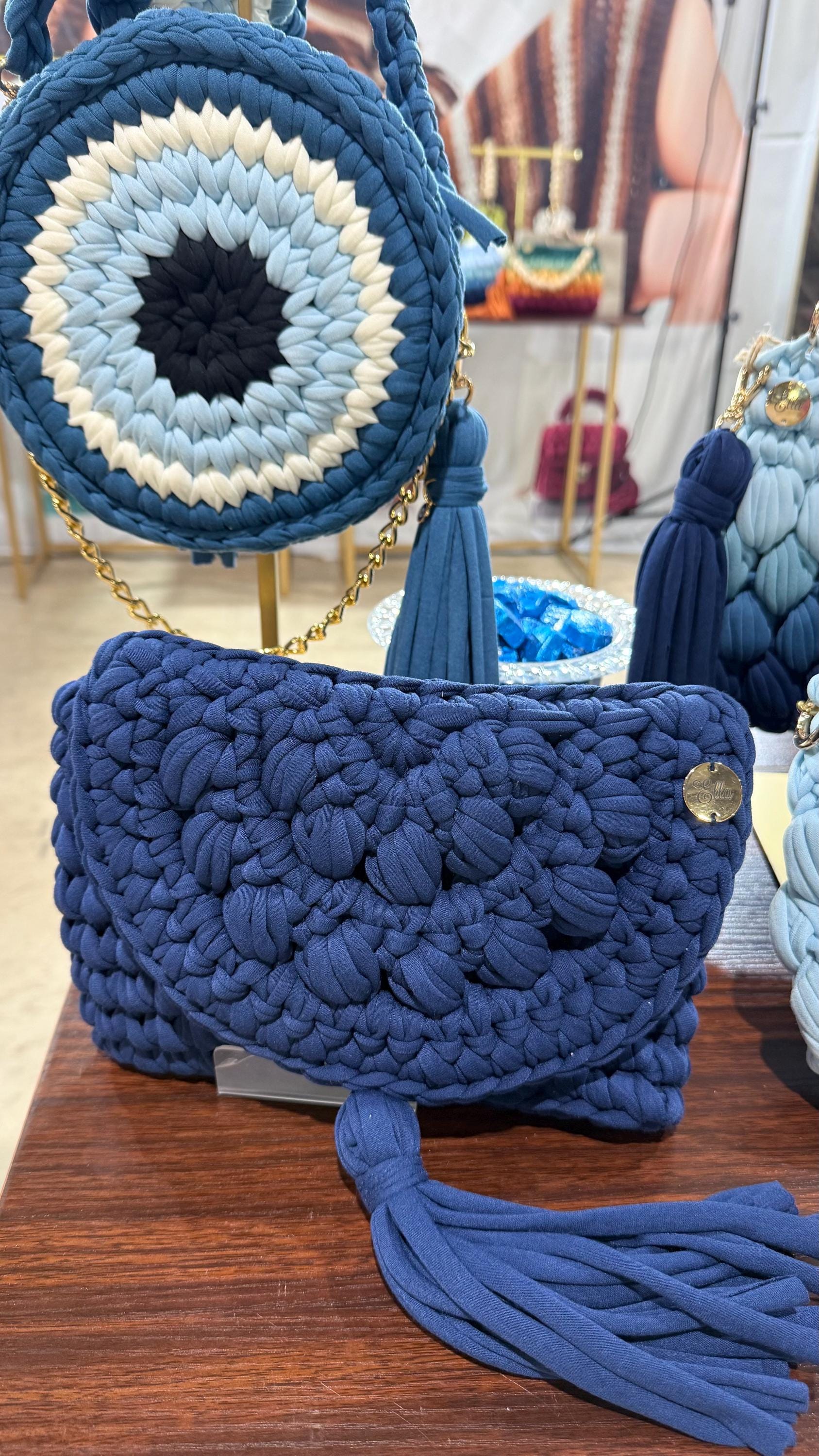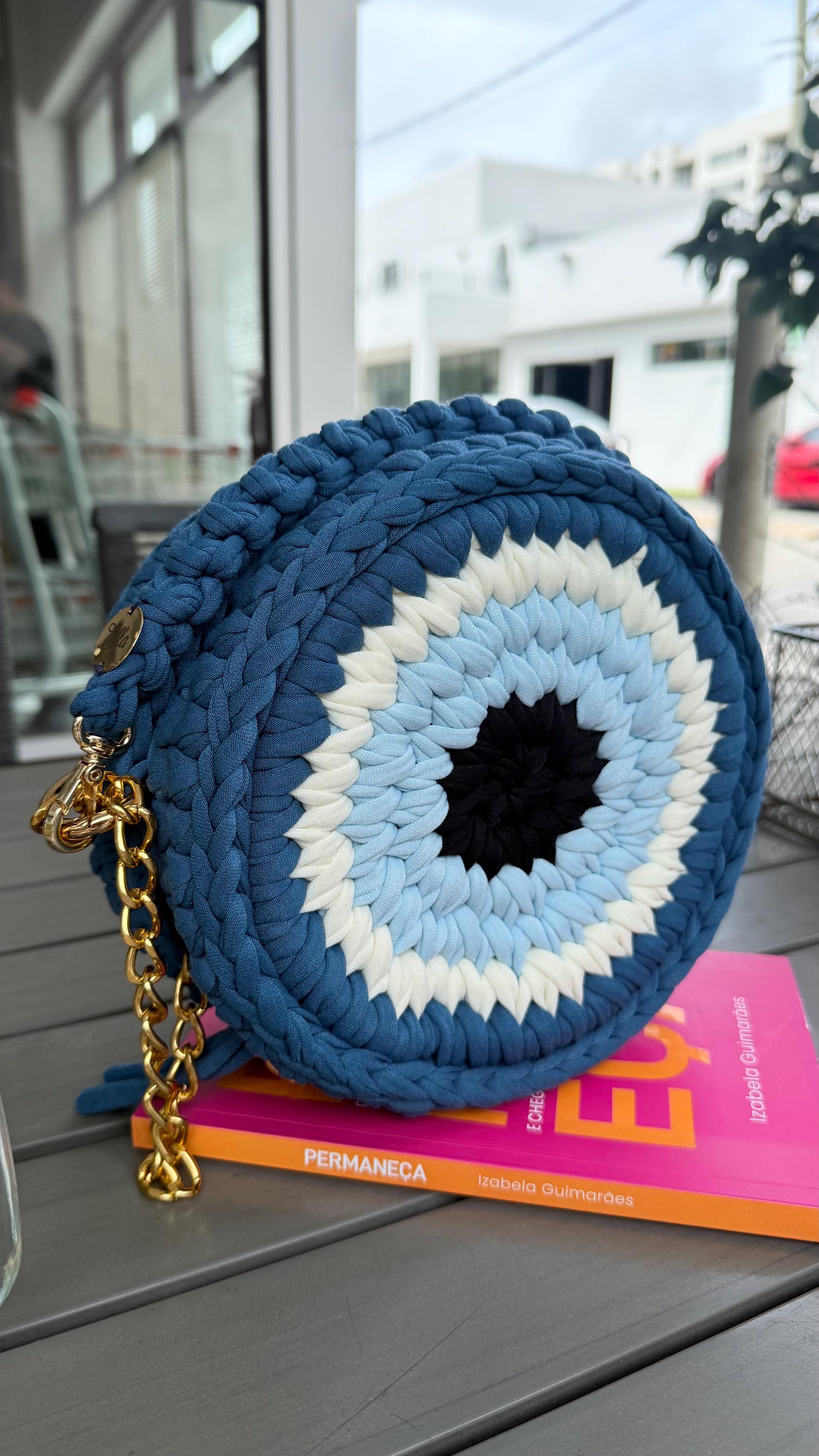 **✨ Artisan Excellence** Every stitch tells a story of dedication and skill. This extraordinary handbag is lovingly created entirely by hand using traditional crochet techniques passed down through generations. The intricate eye design features mesmerizing concentric circles in deep navy, soft sky blue, and creamy white that seem to follow you with their hypnotic beauty.