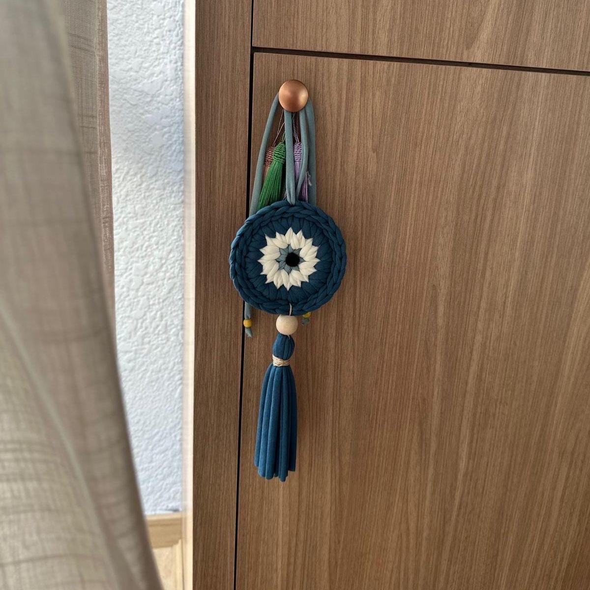 1. "Hang on My Luck - Handmade Crochet Evil Eye Keychain with Removable Tassel | Sustainable Cotton Bohemian Charm" 2. "Handcrafted Evil Eye Crochet Keychain - Eco-Friendly Cotton Car Charm | Bohemian Artisan Accessory" 3. "Sustainable Crochet Keychain - Evil Eye Design | Handmade Cotton Charm with Tassel | Boho Car Accessory"