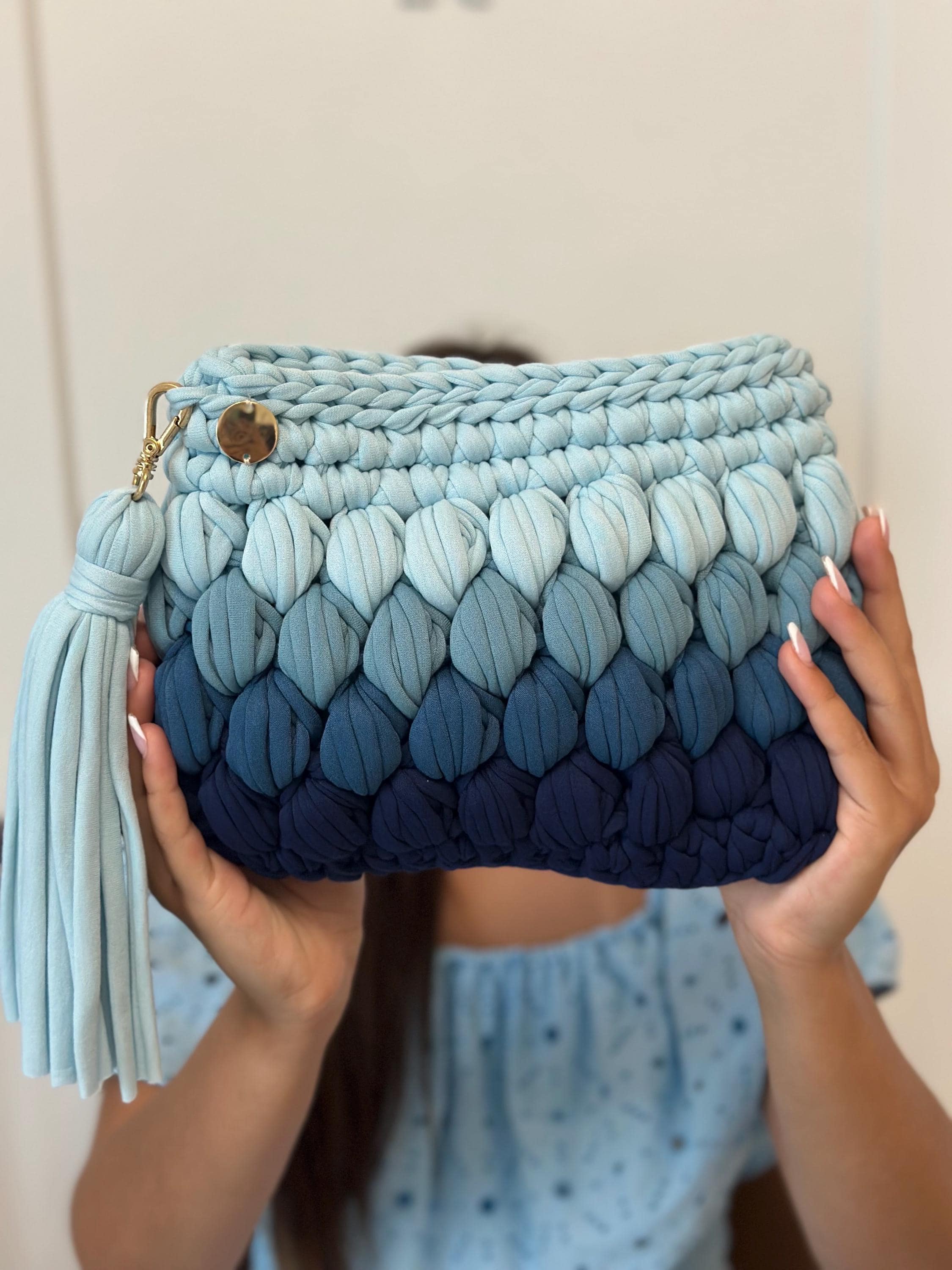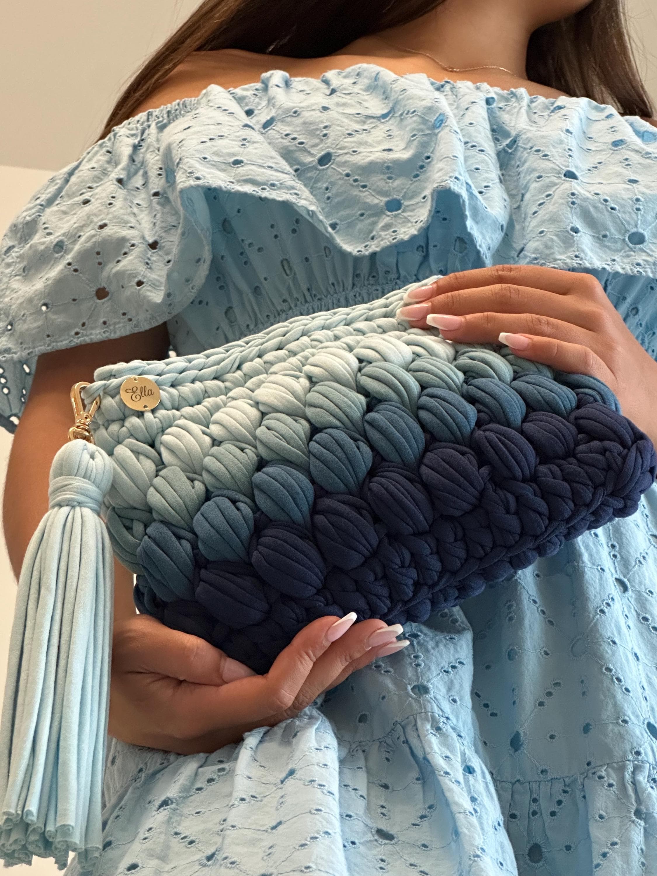 This isn't just an accessory - it's your piece of the ocean wherever you go. The tranquil blue gradient brings instant calm and pairs beautifully with whites, corals, neutrals, and metallics. Each bag embodies the peaceful rhythm of sustainable craftsmanship and conscious design.