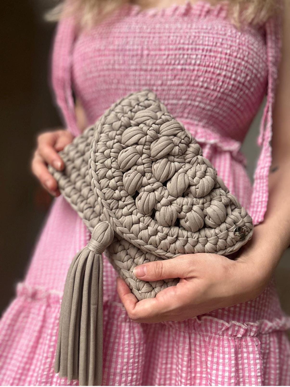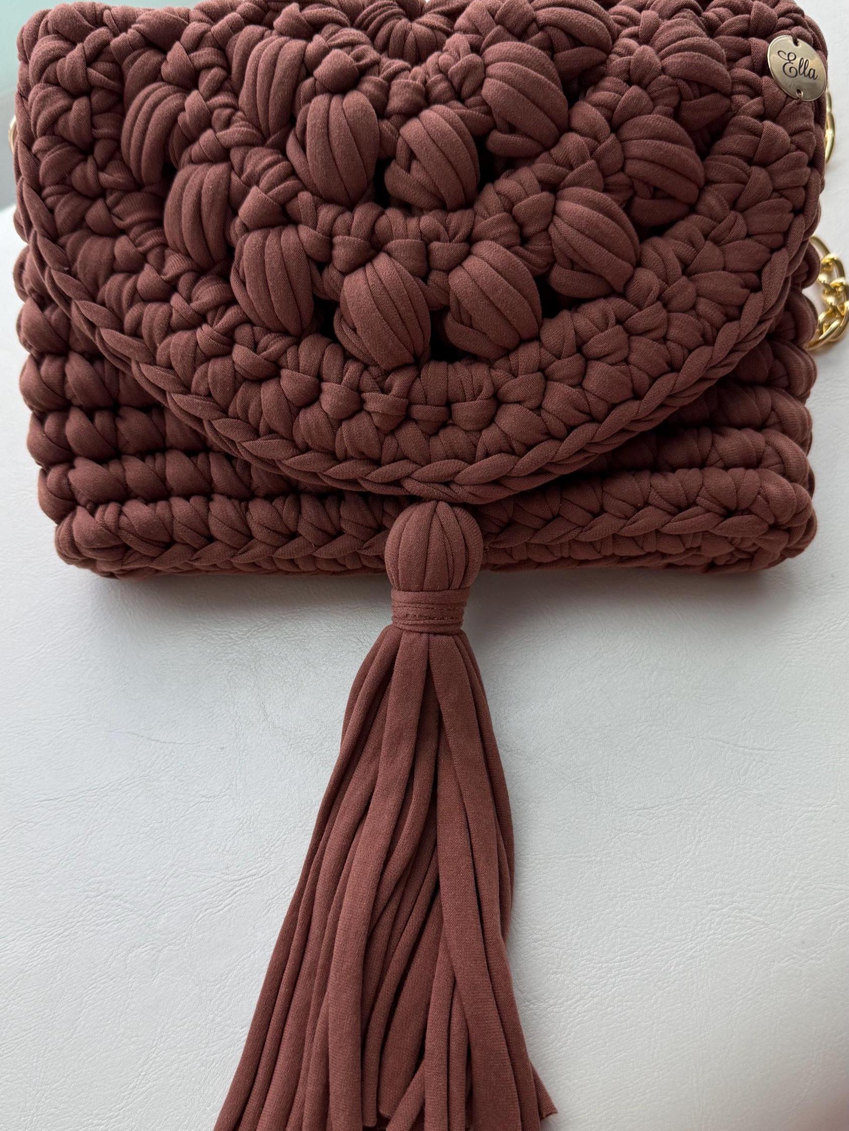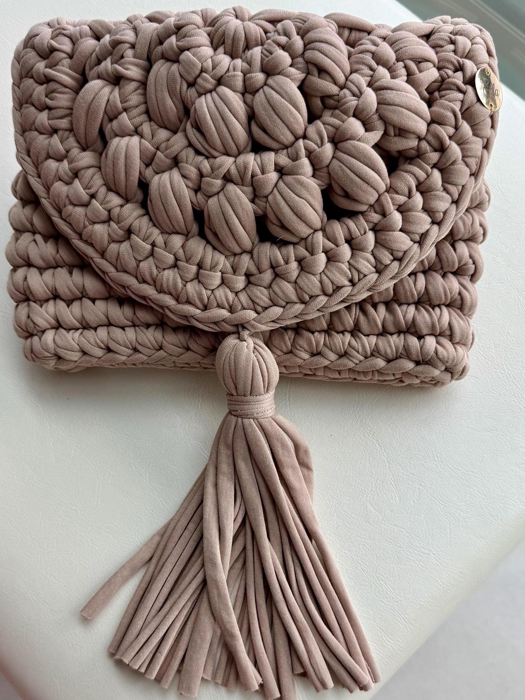 This handmade crochet bag combines artisan craftsmanship with contemporary design. The structured silhouette gives it a polished, luxury feel while the chunky texture adds modern edge. Care Instructions: Spot clean only, reshape while damp and air dry flat. Tags: structured handbag, chunky knit purse, handmade crochet bag, tassel bag, luxury handbag, bubble stitch bag, artisan purse, statement bag, textured handbag, designer-inspired bag, handcrafted accessories, structured purse Ready to ship in your choice of color! Perfect for treating yourself or gifting someone special! ✨