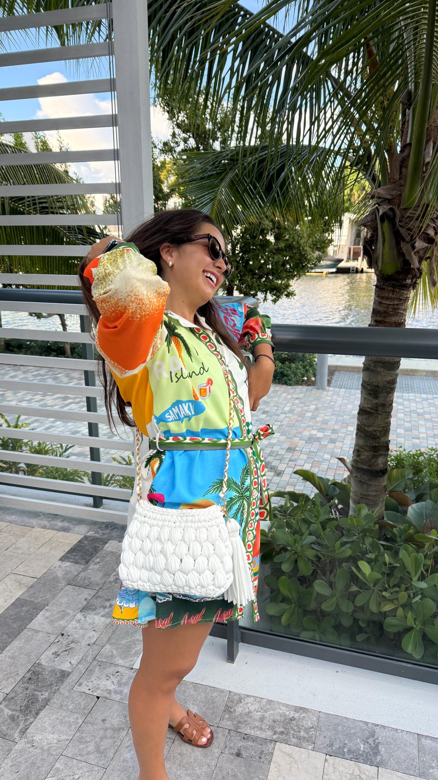 **Why You'll Love This Ocean Beauty:** - Universally flattering blues that complement every skin tone - Evokes feelings of calm, peace, and wanderlust - Perfect conversation starter about ocean conservation and ethical fashion - Supports artisan communities and eco-friendly practices - Ideal size for beach days, date nights, or coastal adventures