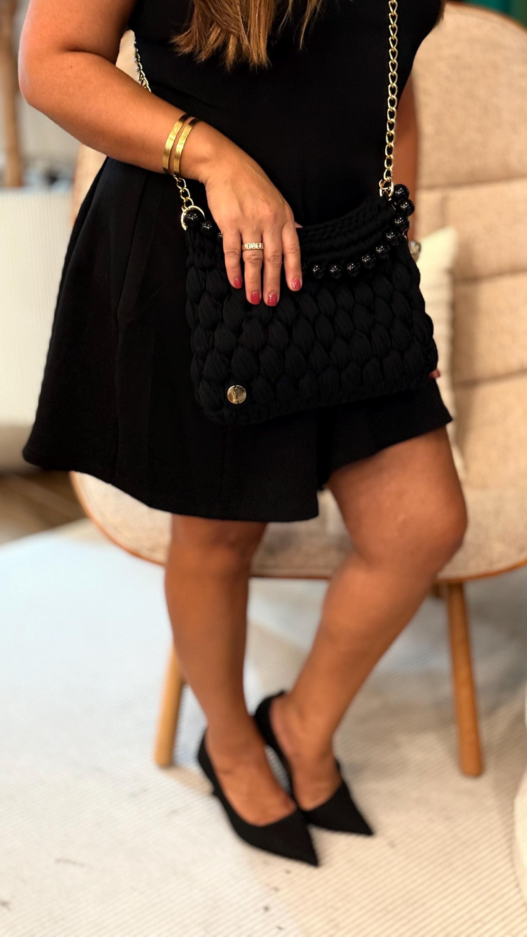 - "Black Savage" Handmade Crochet Bucket Bag | Organic Cotton Boho Crossbody | Sustainable Handbag