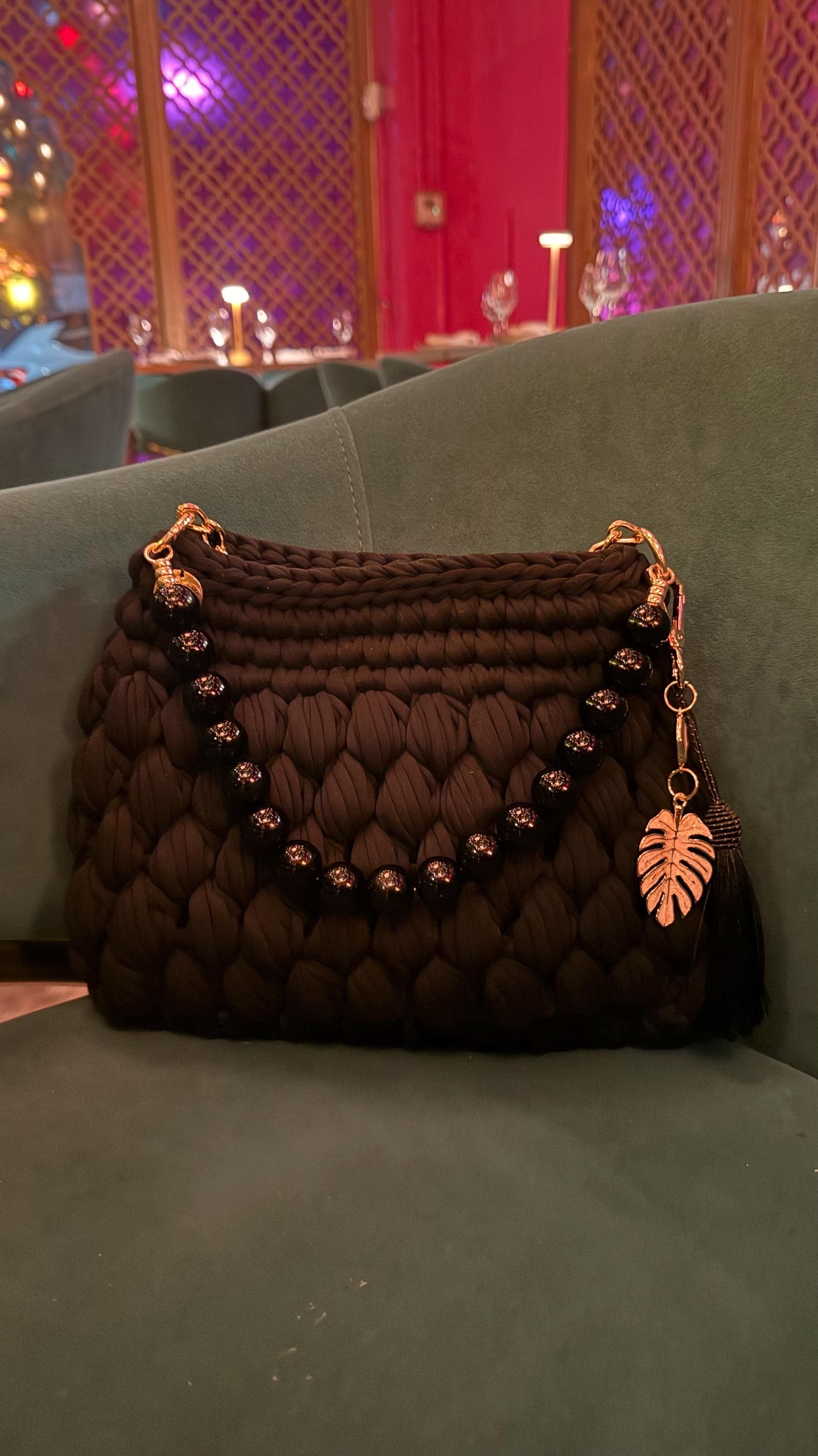- Artisan Crochet Bag "Espresso Me Later" | Wooden Bead Handle | Eco-Friendly Cotton Purse