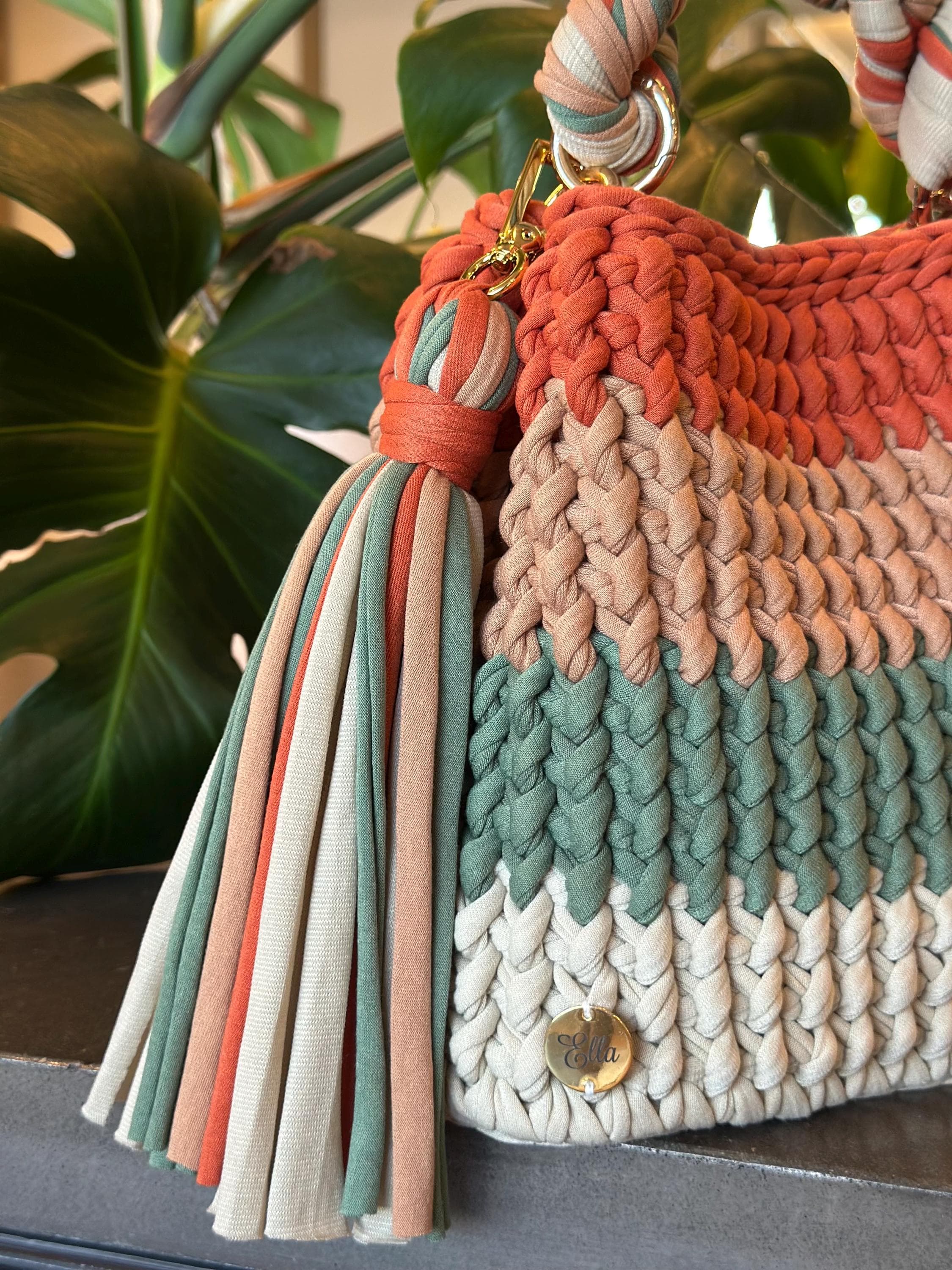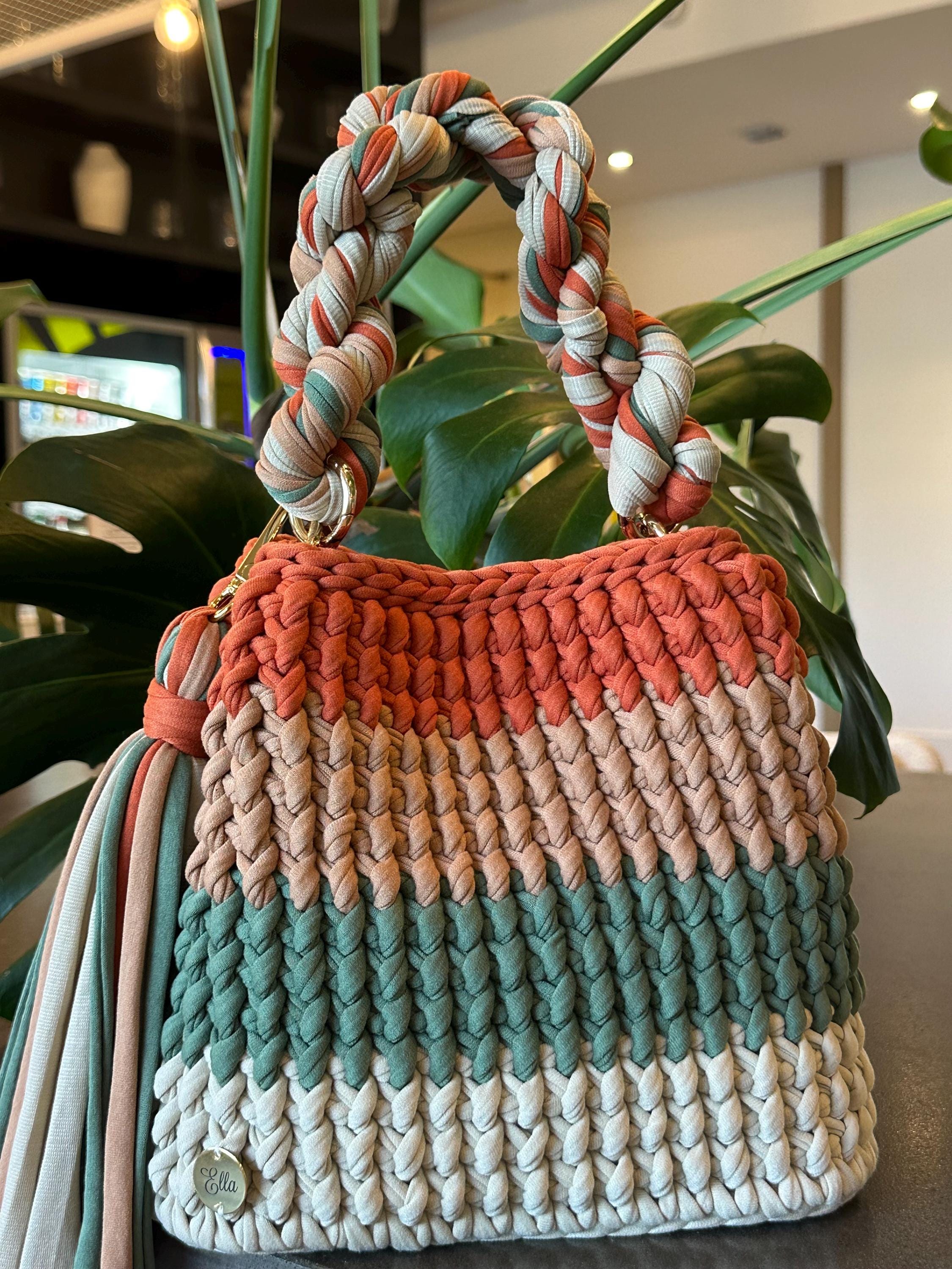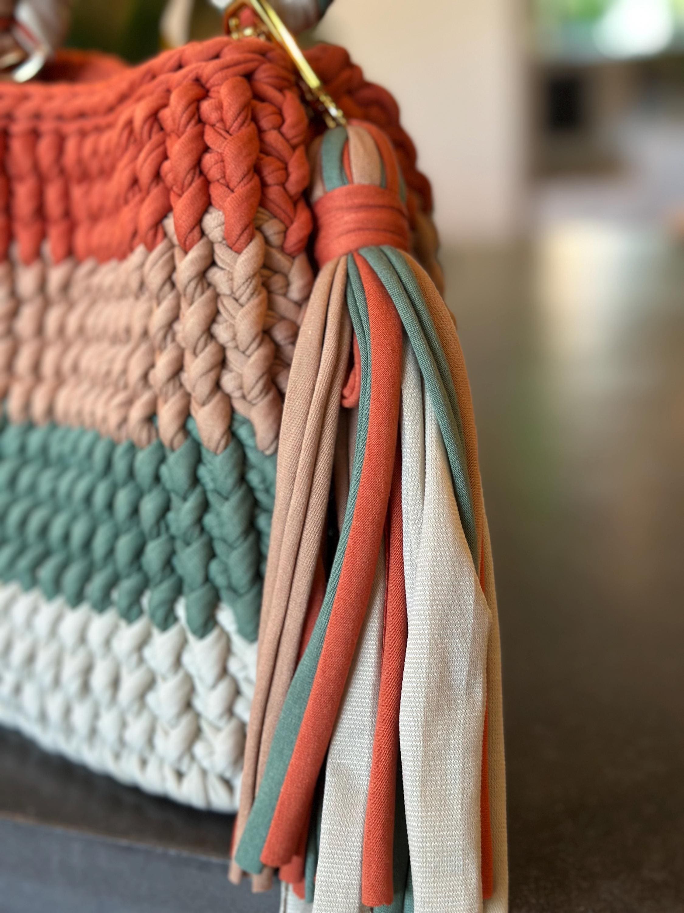 Bring a touch of nature-inspired elegance to your everyday style with this handmade crochet bag crafted in beautiful earthy tones of terracotta, beige, sage green, and ivory. Each stitch is woven with care, creating a stunning boho chic accessory that blends comfort, craftsmanship, and timeless charm.