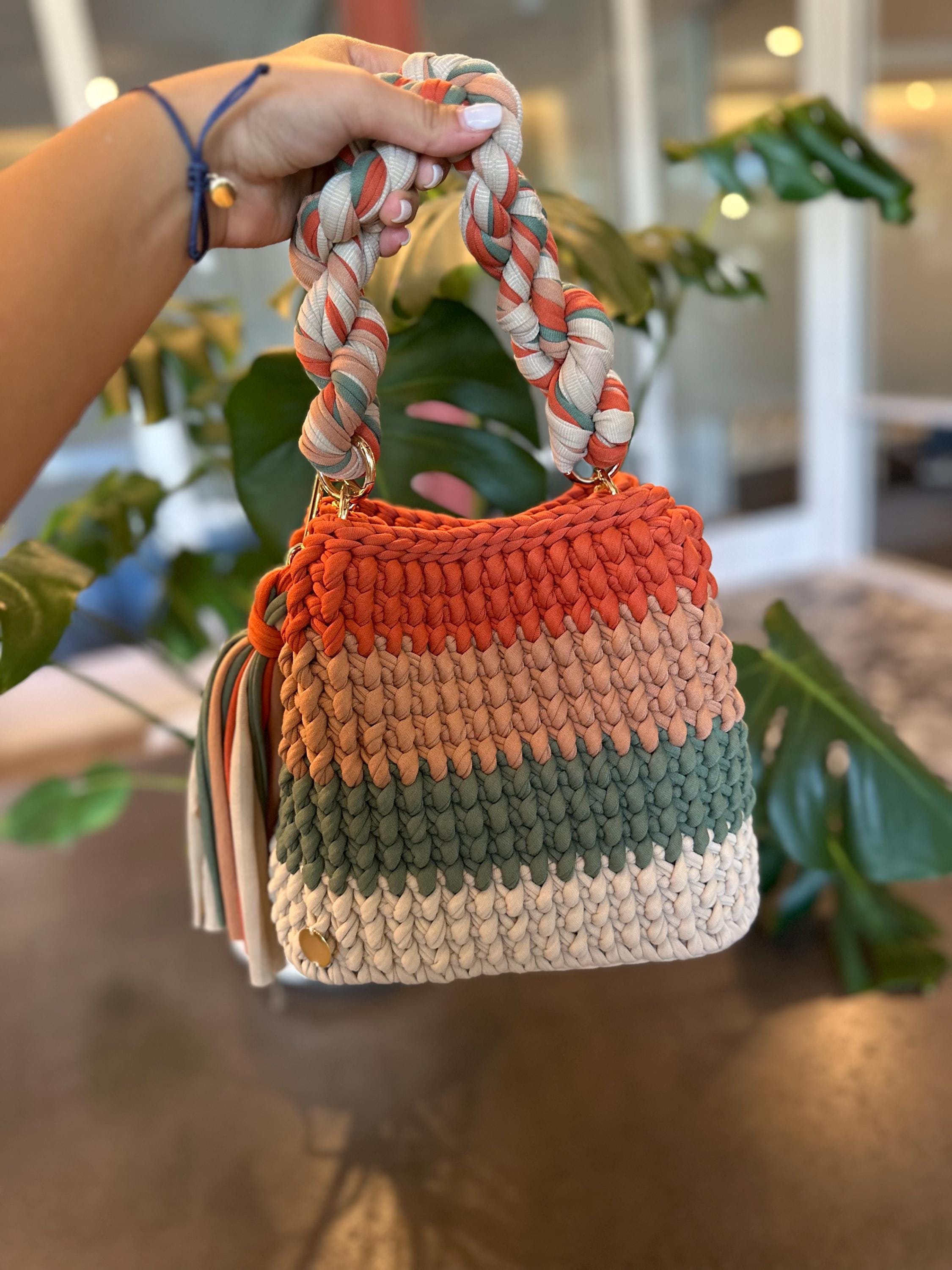 Come in 4 colors: Carrot Orange Pale 🌿 Handmade Crochet Bag – Earth Tone Boho Chic Purse with Twisted Handle