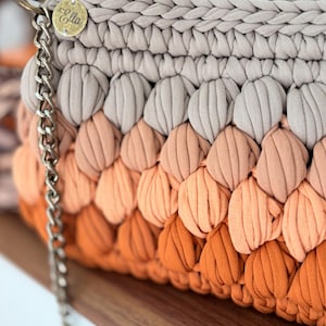 Transform your everyday style with this stunning handcrafted chunky knit handbag! This eye-catching purse features a gorgeous gradient design that flows from soft grey to warm terracotta, creating a beautiful sunset-inspired ombré effect. ✨ What makes this bag special: